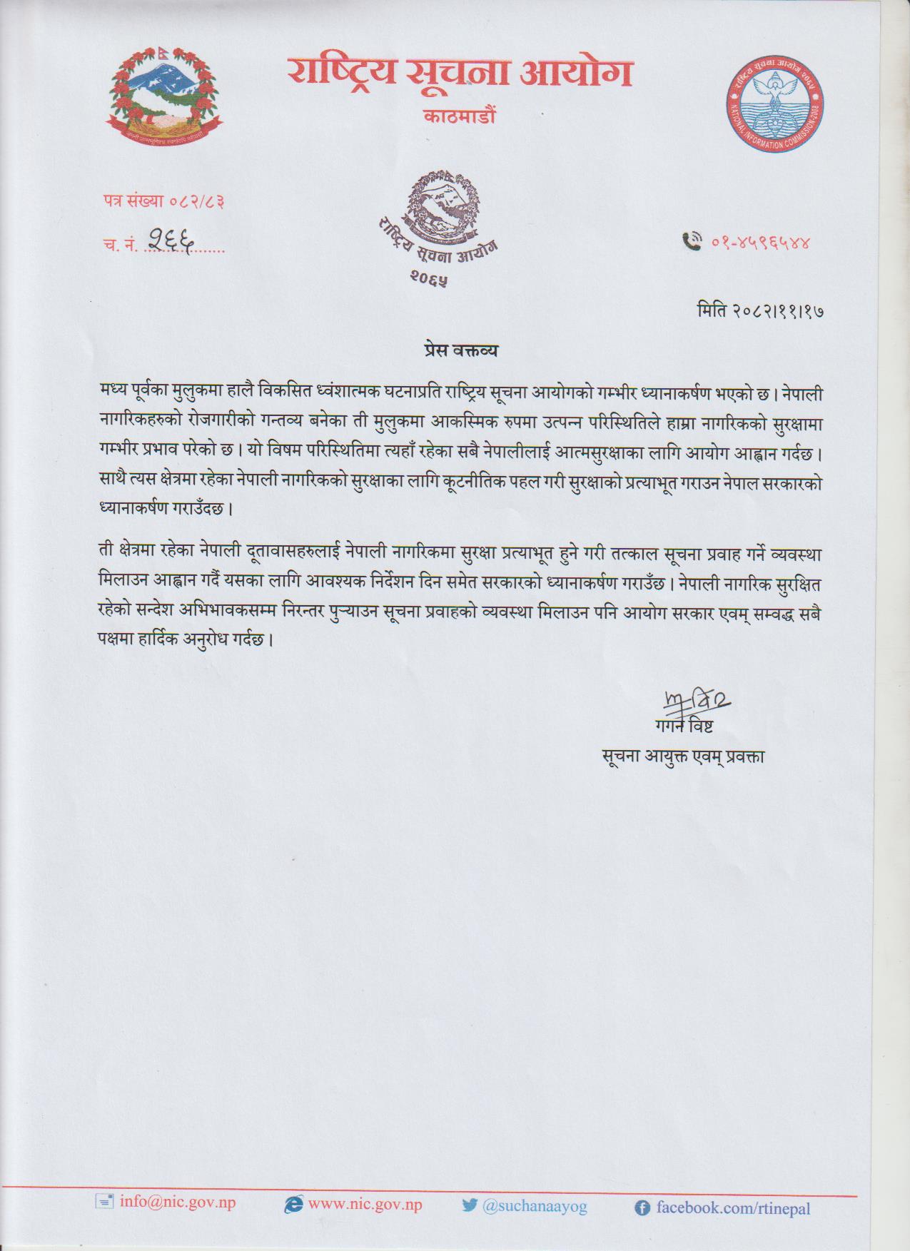मध्यपूर्वका मुलुकमा विकसित घटना प्रति आयोगको विज्ञप्ती